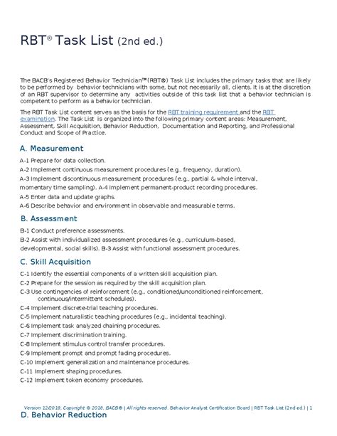 Web The Rbt Task List Content Serves As The Basis For The Rbt Training Requirement And The.